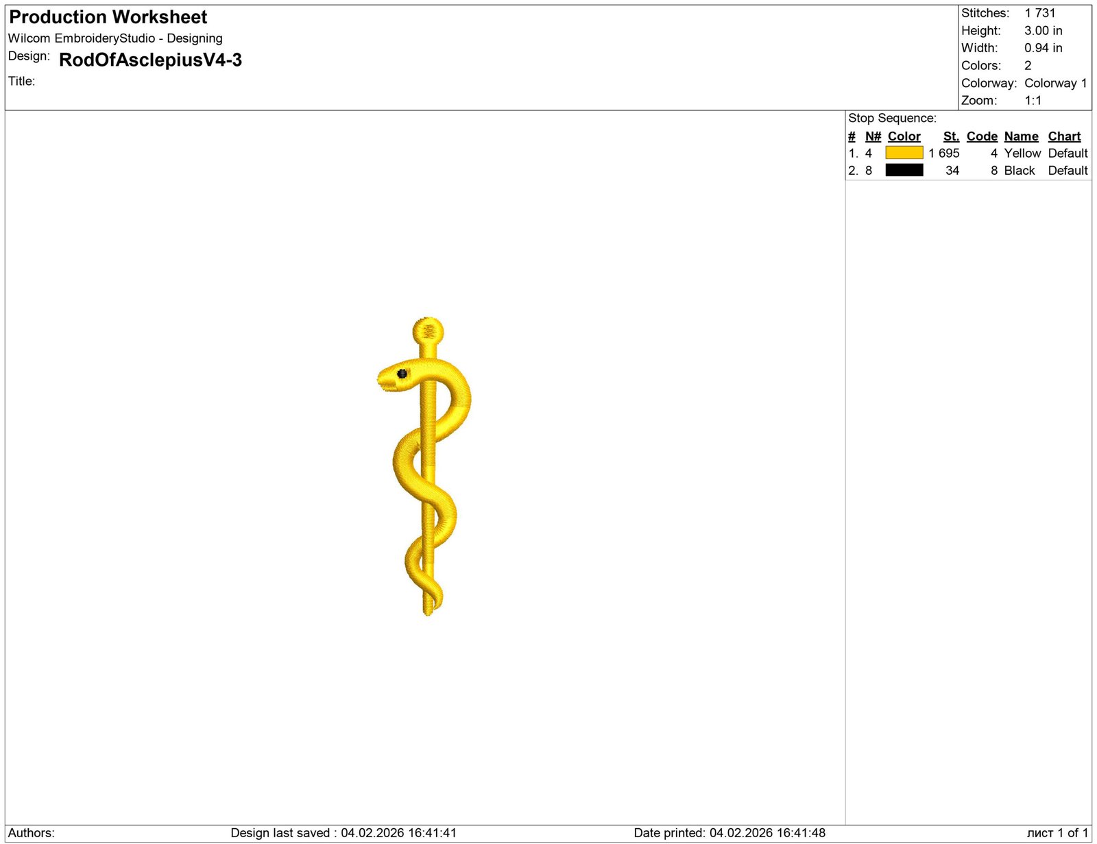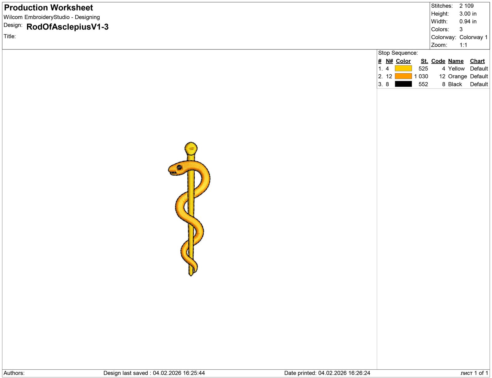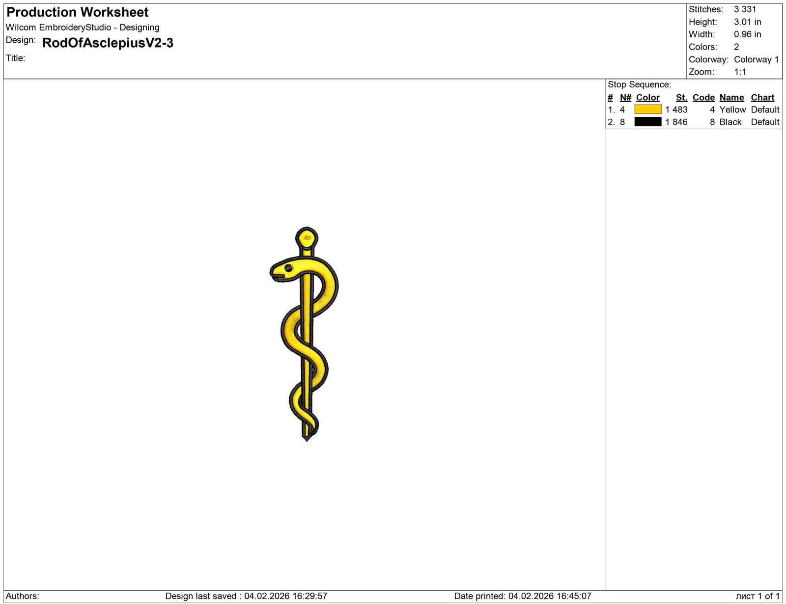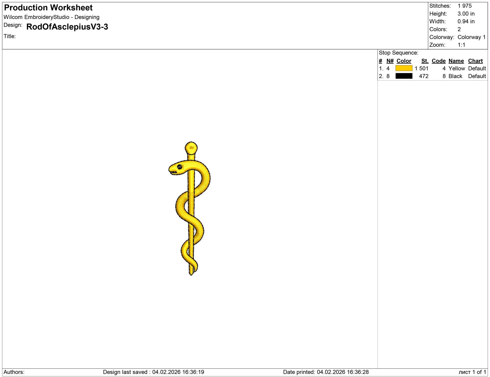 Rod Of Asclepius Embroidery design files