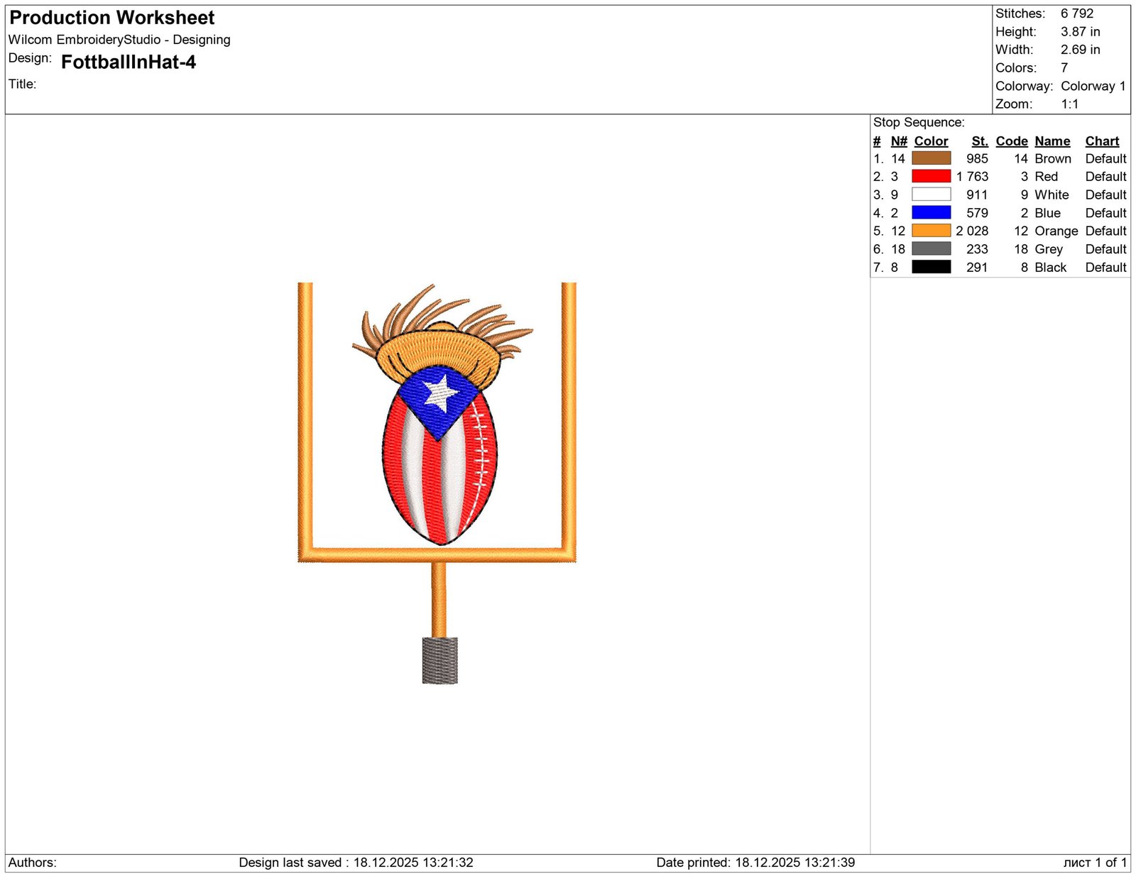 Football in hat Embroidery design files for machine embroidery INSTANT DOWNLOAD.