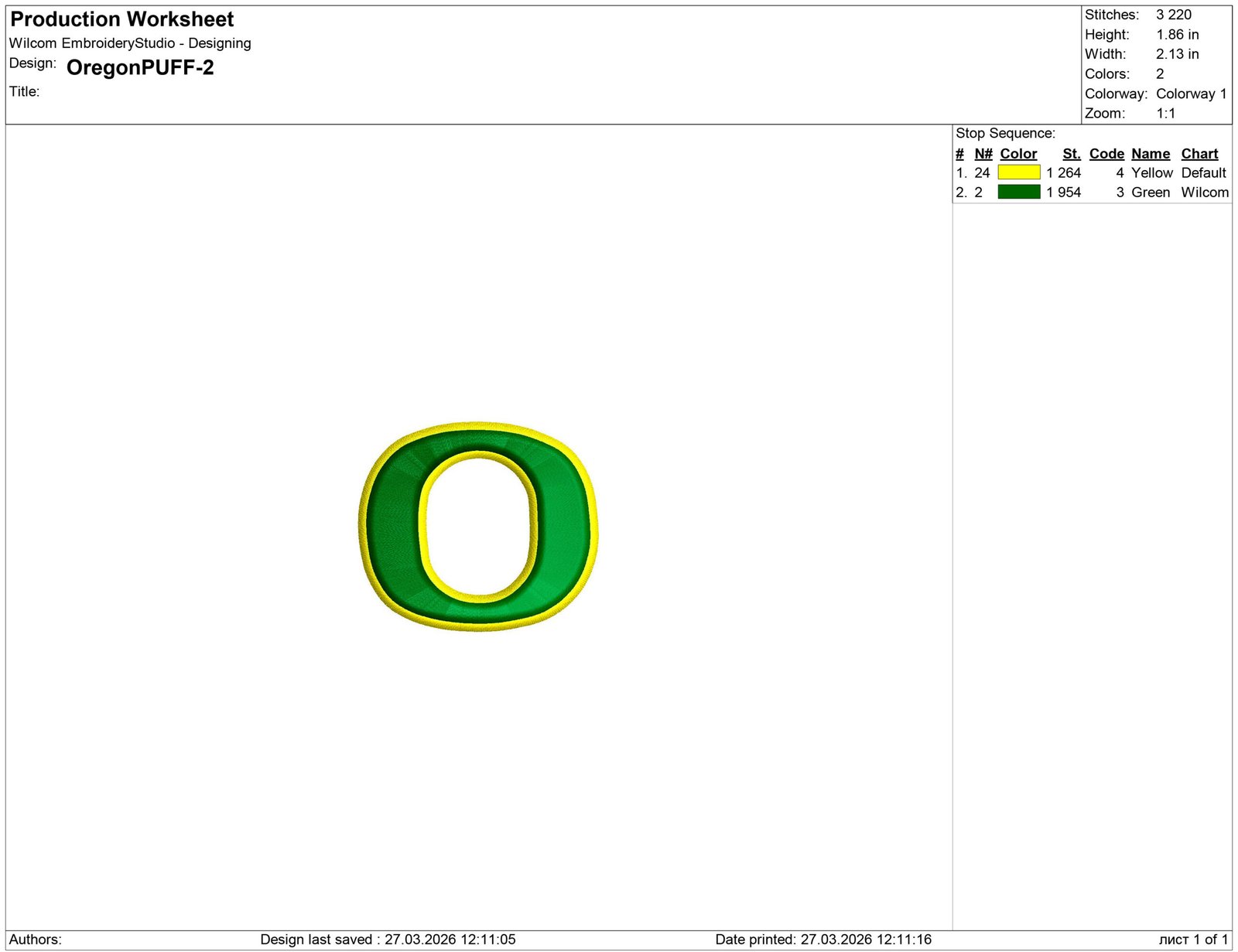 March 25, 2026Oregon O puff Embroidery design files