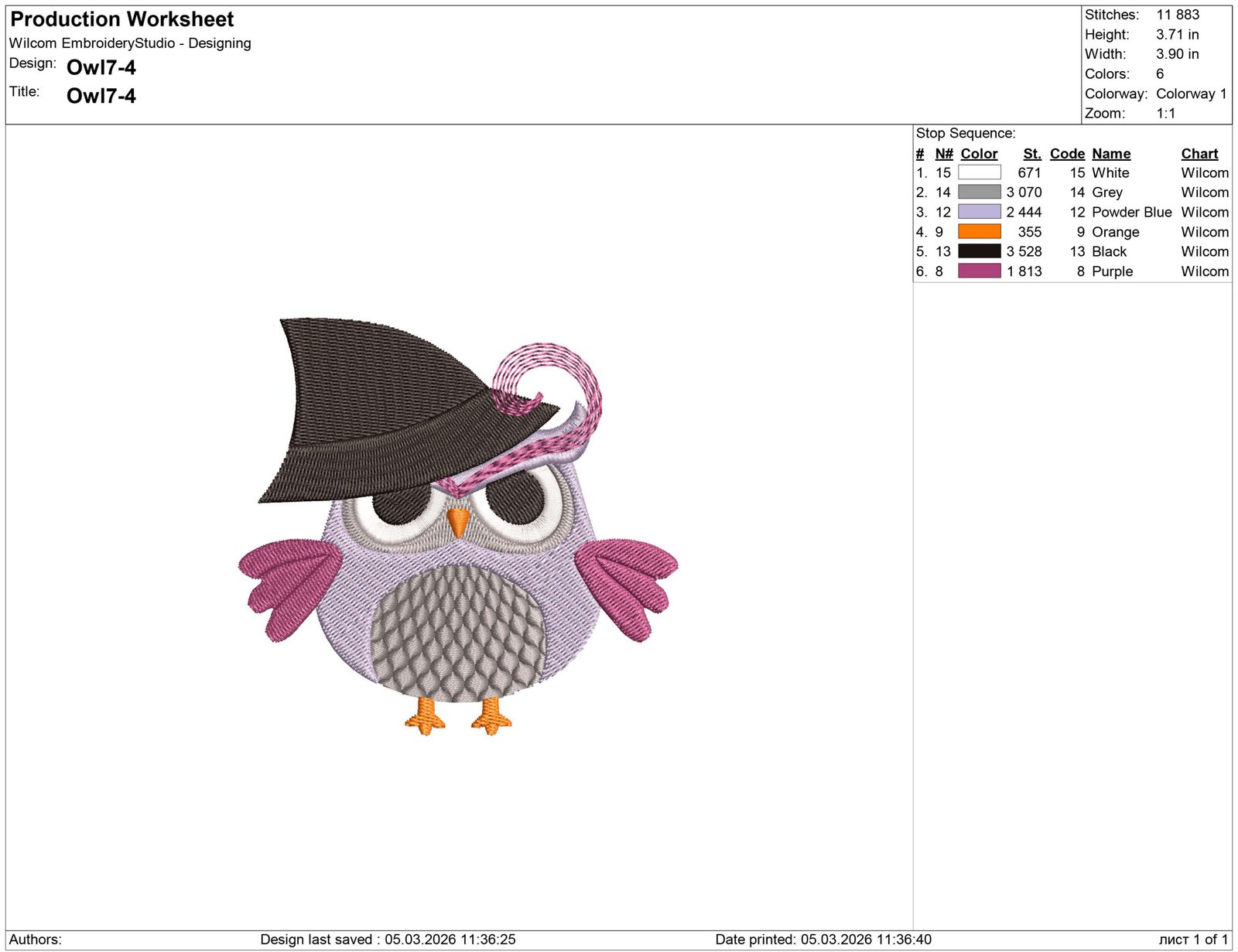 Owl in Hat embroidery design files for machine embroidery INSTANT DOWNLOAD.